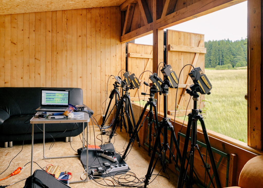 Insects in a meadow communicate through vibrations imperceptible to us. I composed a piece from local insect vibrations recorded by the biologist Juan, played on shakers hidden under the floor and behind the walls of the hut.