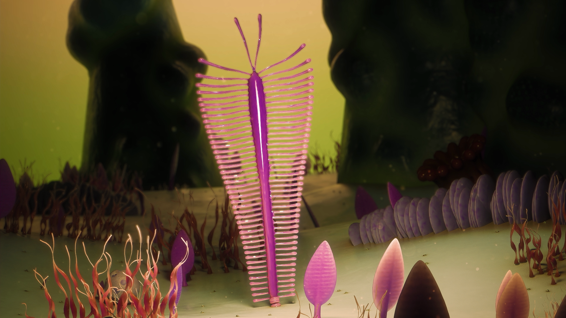 Ludwig Berger’s ‘fictional’ debut album «Garden Ediacara» unfolds as a musical eco-fiction, guiding listeners through a speculative ecosystem with synthesized vocals. Infused with storytelling techniques from sci-fi and fantasy, the album intertwines melodic songwriting with electroacoustic sound design. Inspired by hydrofeminism and eco-fiction novels, such as «A Door Into Ocean» by Joan Slonczewski, the album delves into the geological period of Ediacara around 600 million years ago — an era so remote it resonates as a glimpse into a possible future. The Ediacaran period was characterised by a peaceful and thriving ecosystem inhabited by soft-bodied creatures without eyes and bones, which were completely wiped out through the appearance of a new species. «Garden of Ediacara» alludes to this period, celebrating both the pleasures of biodiversity as well as mourning its inevitable loss. The narrative unfolds as an exploration of growth and interconnection in the shadow of a coming extinction. The track titles, written by Daisy Lafarge, reveal themselves as a cohesive poem and contribute to the album’s narrative.